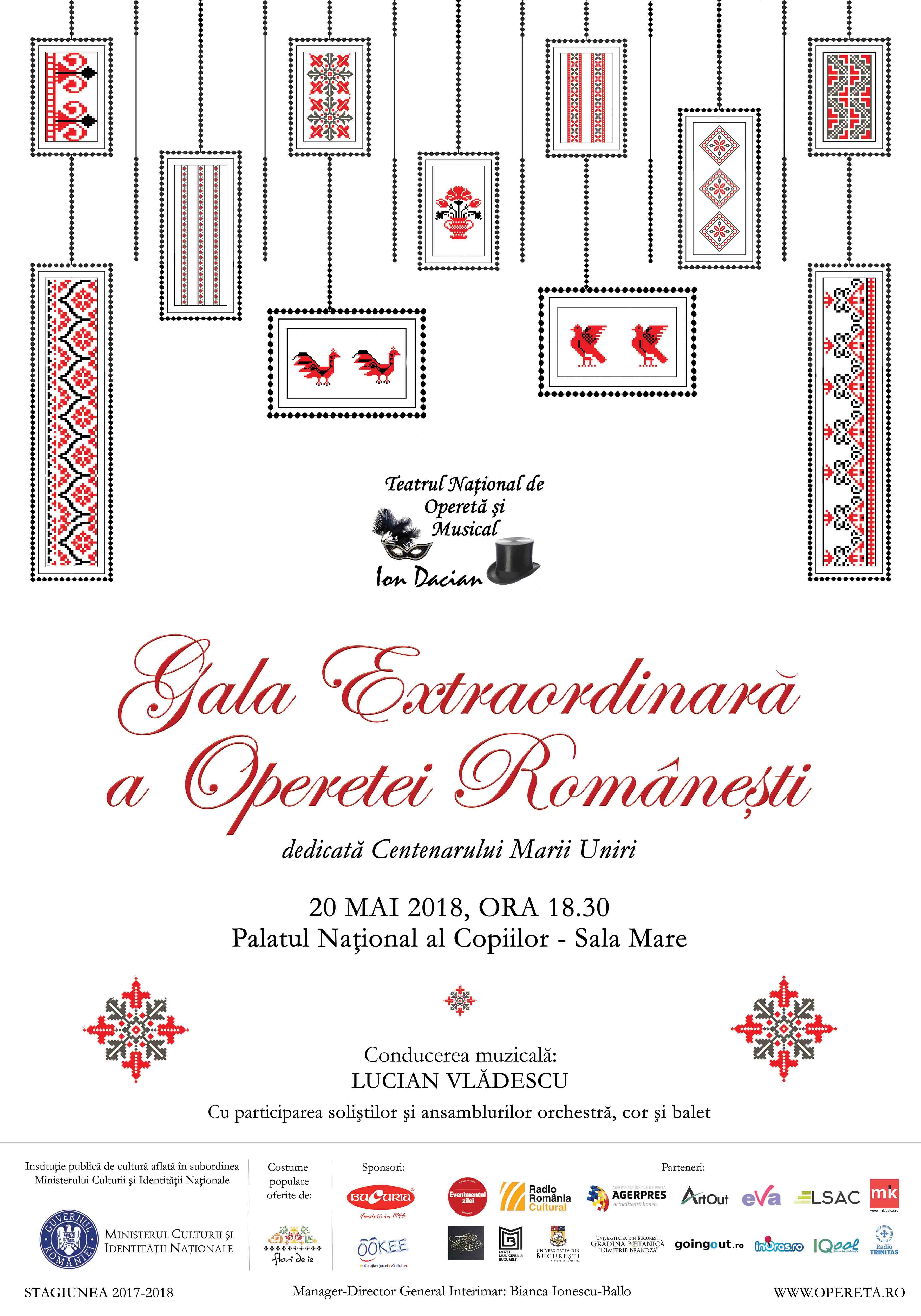 Tradiția, cultura și folclorul se împletesc în operetele compozitorilor români și sunt transmise mai departe, către public, cu talent și dăruire, de echipa Operetei bucureștene.Vă așteptăm pe 20 mai, de la ora 18:30 la Palatul Național al Copiilor – sala mare, să ne bucurăm împreună la “Gala Extraordinară a Operetei Românești” de cele mai valoroase creații ale compozitorilor români în interpretarea grandioasă a soliștilor, orchestrei, corului și baletului Teatrului Național de Operetă și Musical “Ion Dacian”.