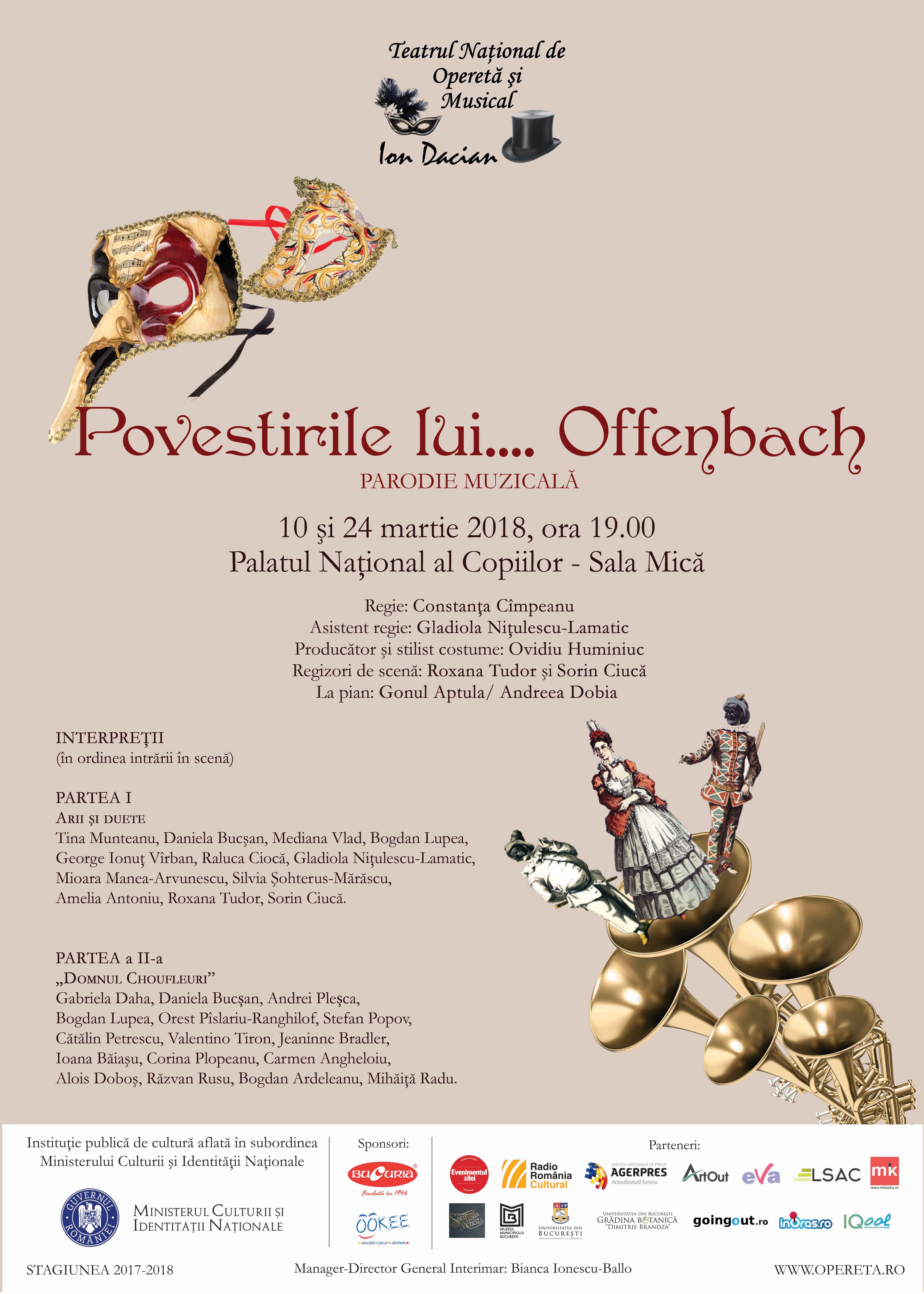Pe 10 martie, de la ora 19:00, la Sala Mică a Palatului Național al Copiilor vă invităm la „Povestirile lui… Offenbach”.
