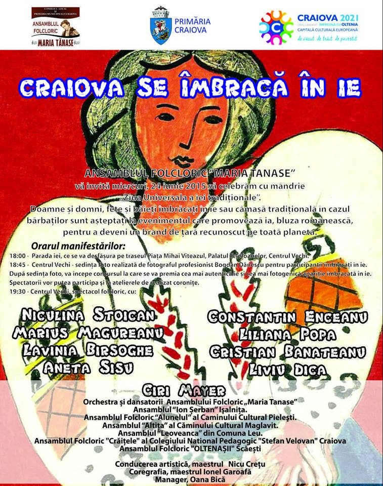 Craiova se alătură astfel sutelor de oraşe din România și de peste hotare care promovează ia, bluza românească, pentru a deveni un brand de ţară recunoscut pe toată planeta.