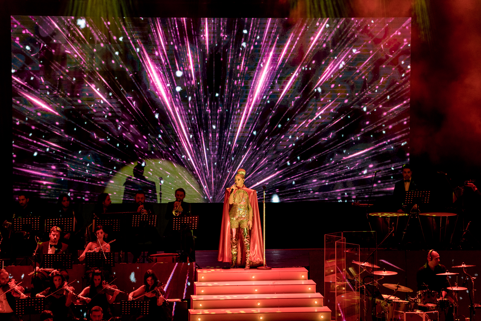 O imensa desfasurare de forte, cu sute de persoane implicate, 4 invitati speciali, Smiley, Ruby si Colin, Doru Todorut (DeepCentral), o scena de 344 metri, cu o greutate de 9 tone, alaturi de 76 de boxe, 358 de lumini, 3200 de metri de cablu, mega-concertul “X” este, dincolo de un concert exceptional, un eveniment desprins din filmele SF.