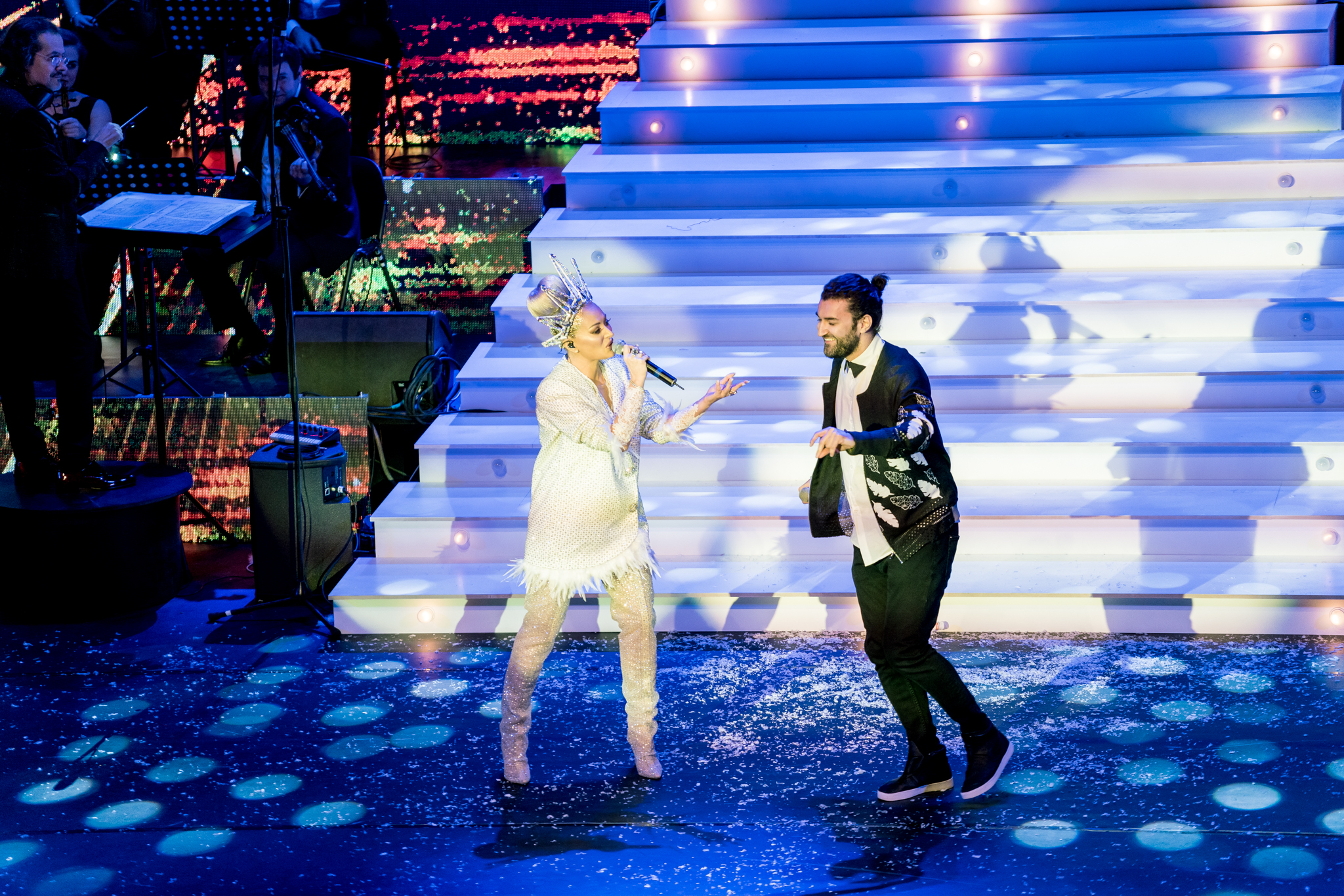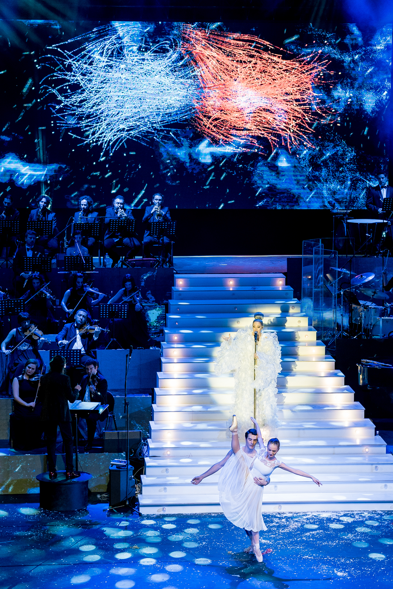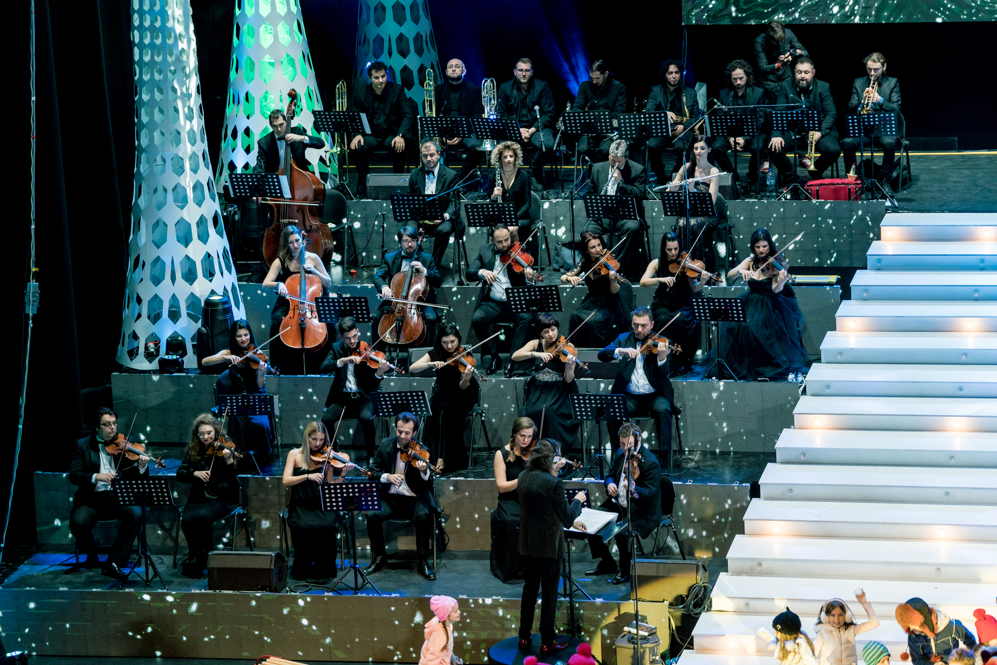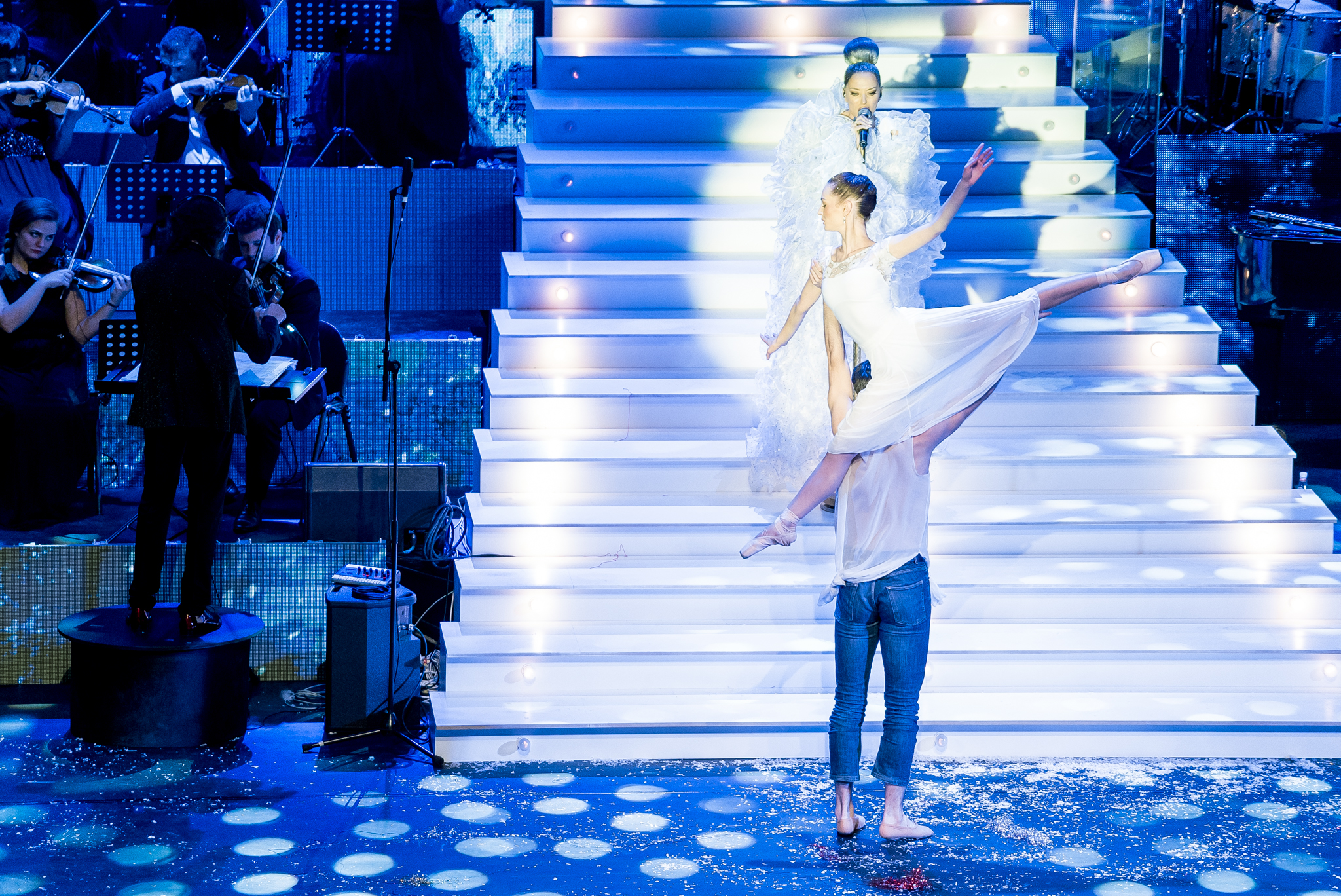 Grafica expusa in peste 200 de module de ecran led si facuta dedicat pentru acest show de catre NRG Moldova a avut ca laitmotiv fulgul de nea, concept in jurul caruia s-a si construit intregul show, iar scenografia grandioasa a conturat perfect starea de taram magic al iernii. Si cand spunem magic, ne referim pana si la brazi, caci in Delia’s Winter Wonderland am descoperit bradul uman, dispus pe 3 etaje si format din 6 fete-brad care au dansat in sincron.