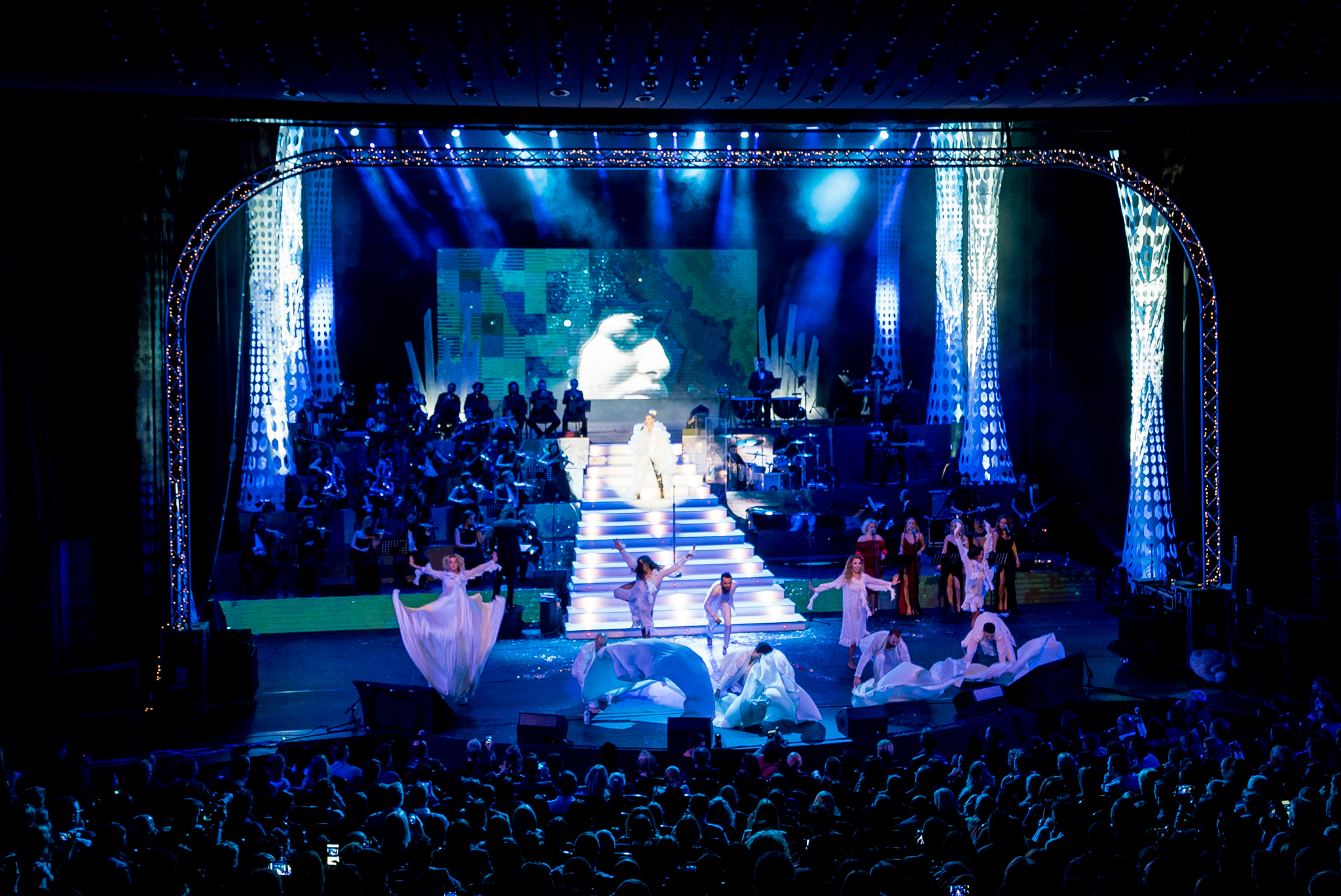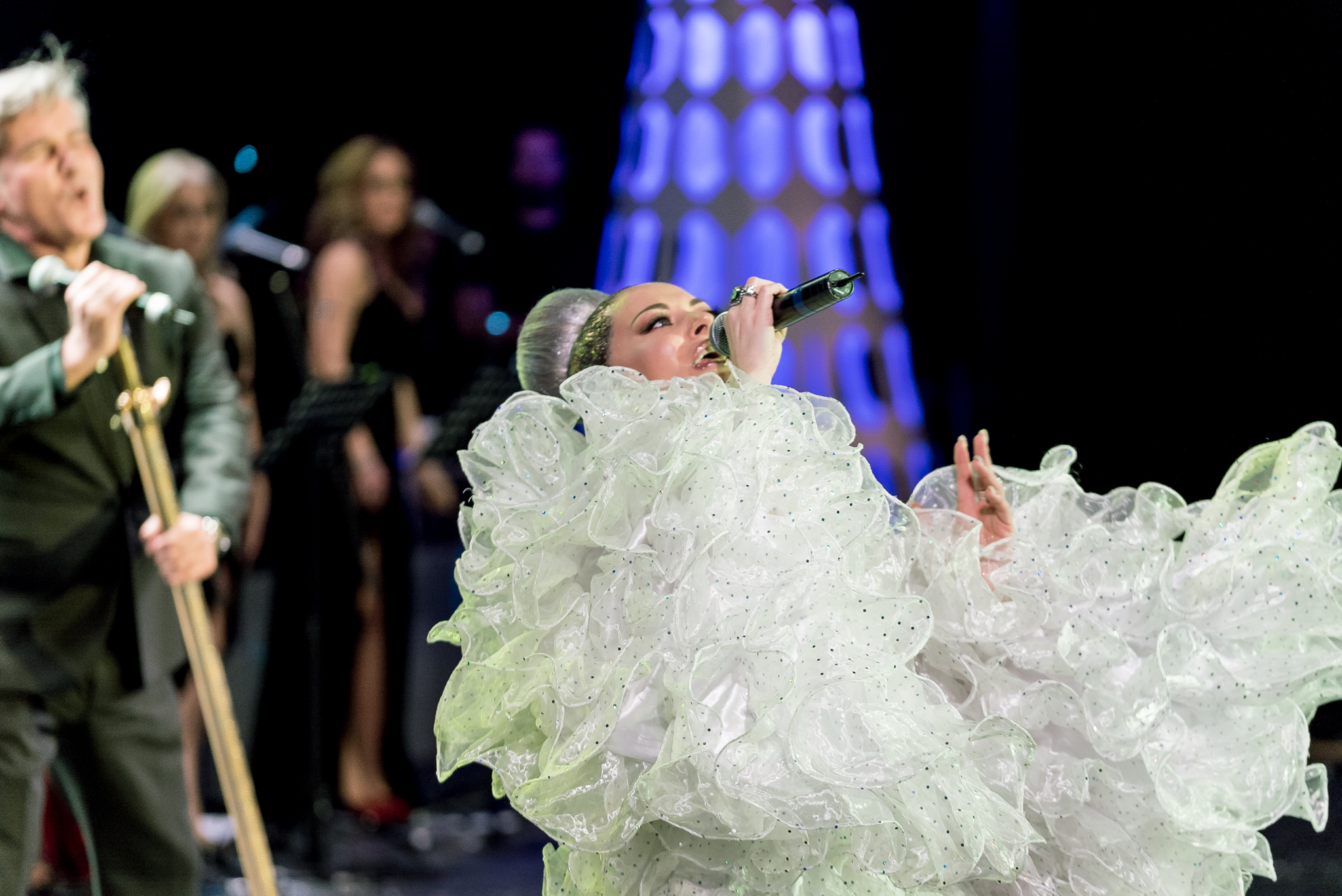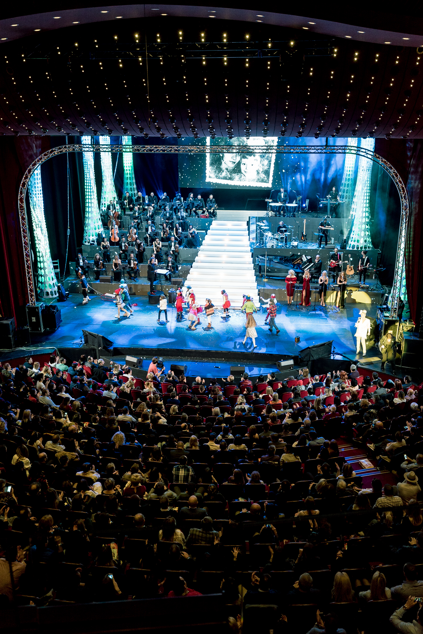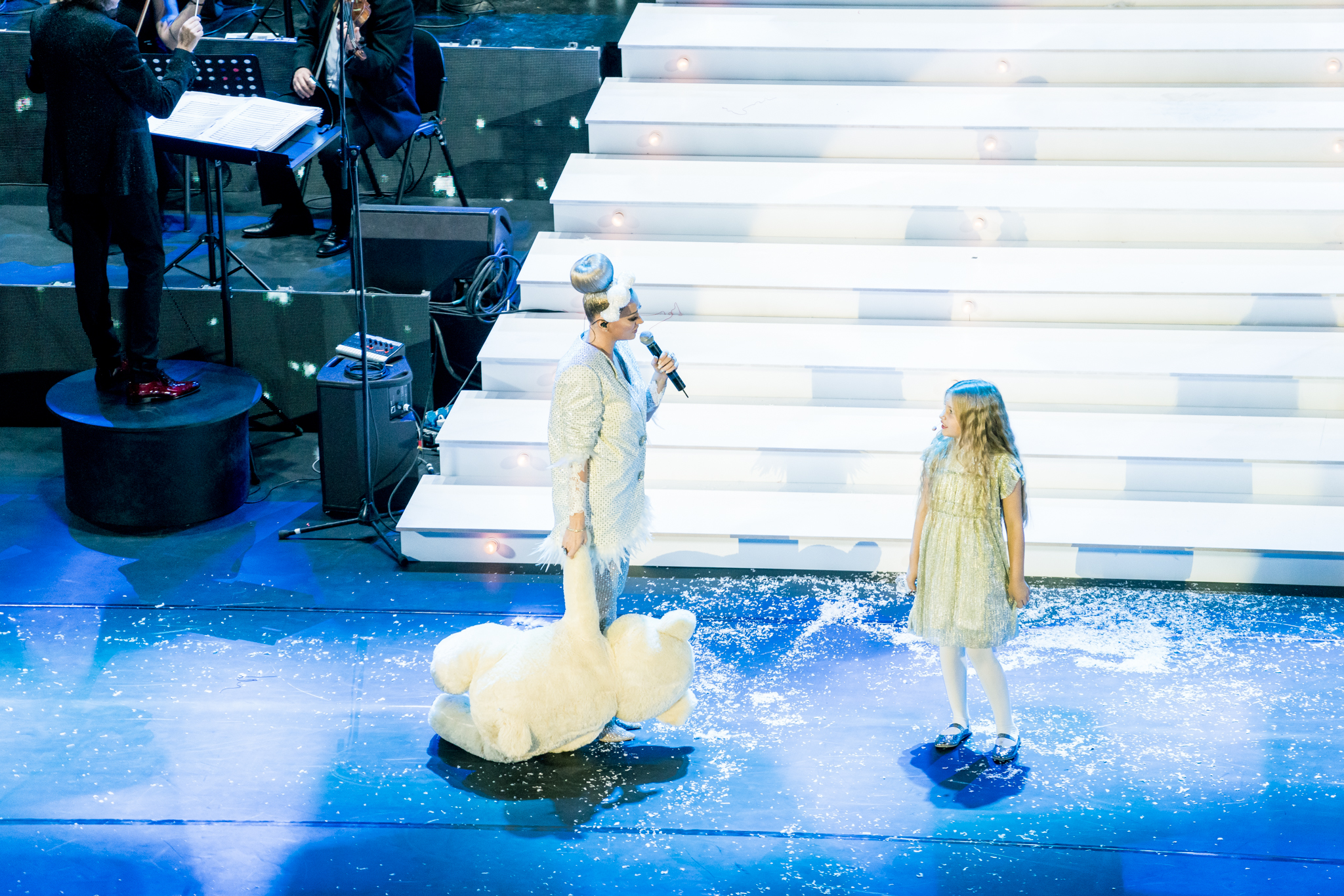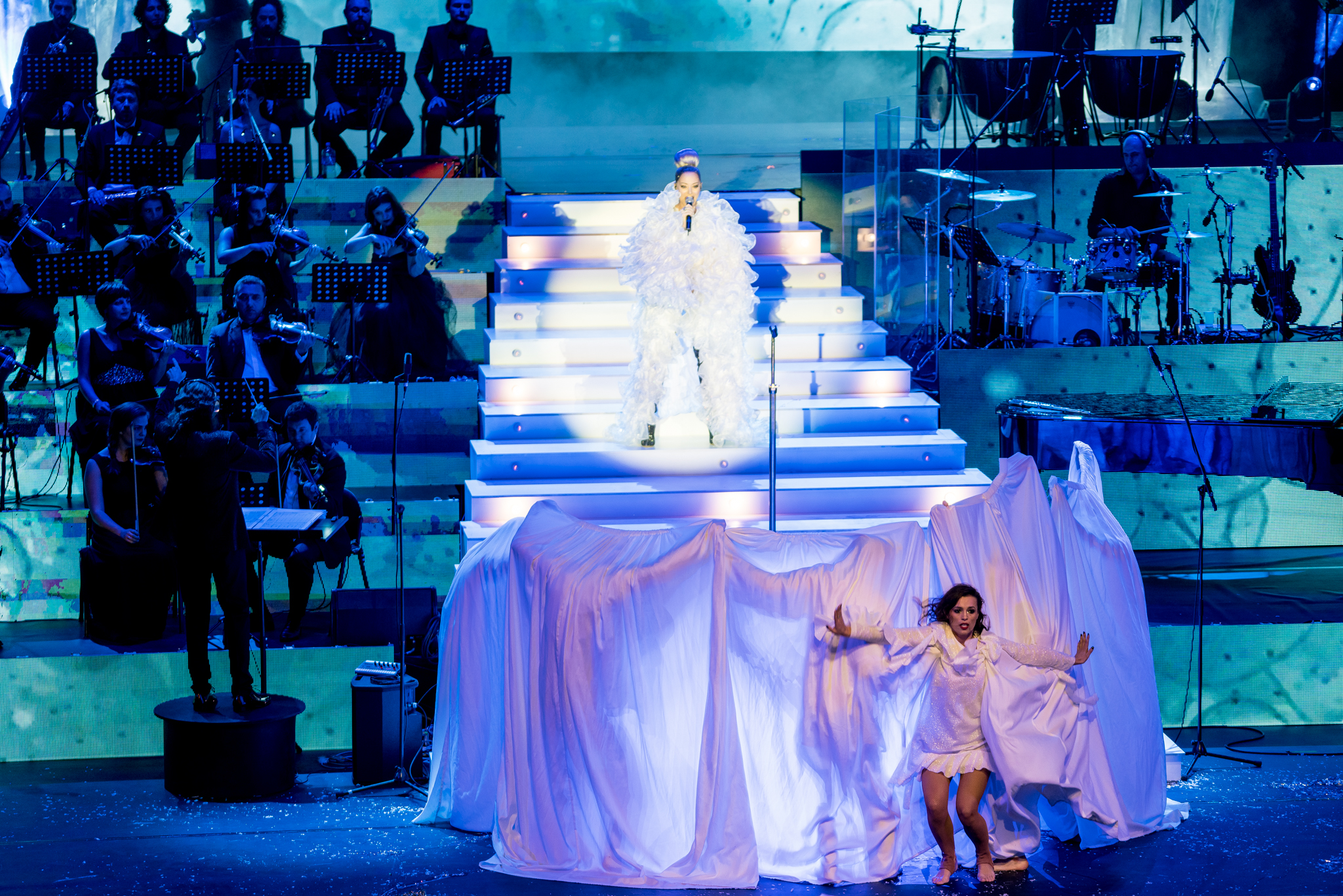 Grafica expusa in peste 200 de module de ecran led si facuta dedicat pentru acest show de catre NRG Moldova a avut ca laitmotiv fulgul de nea, concept in jurul caruia s-a si construit intregul show, iar scenografia grandioasa a conturat perfect starea de taram magic al iernii. Si cand spunem magic, ne referim pana si la brazi, caci in Delia’s Winter Wonderland am descoperit bradul uman, dispus pe 3 etaje si format din 6 fete-brad care au dansat in sincron.