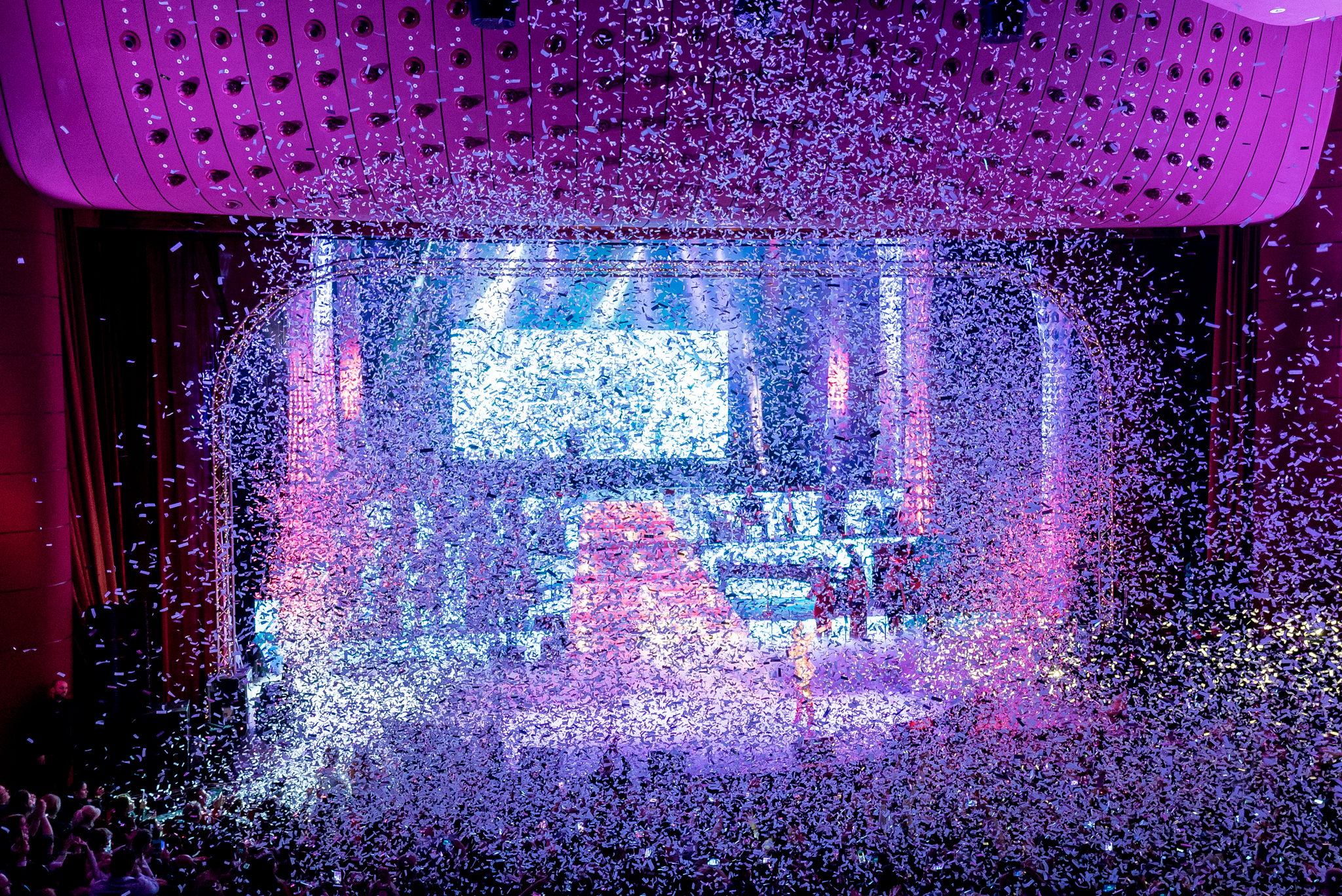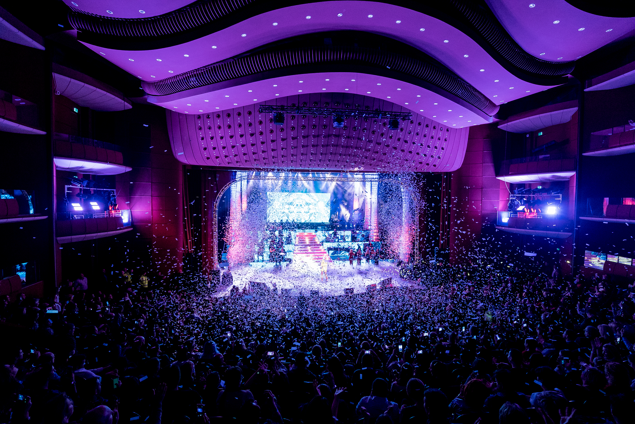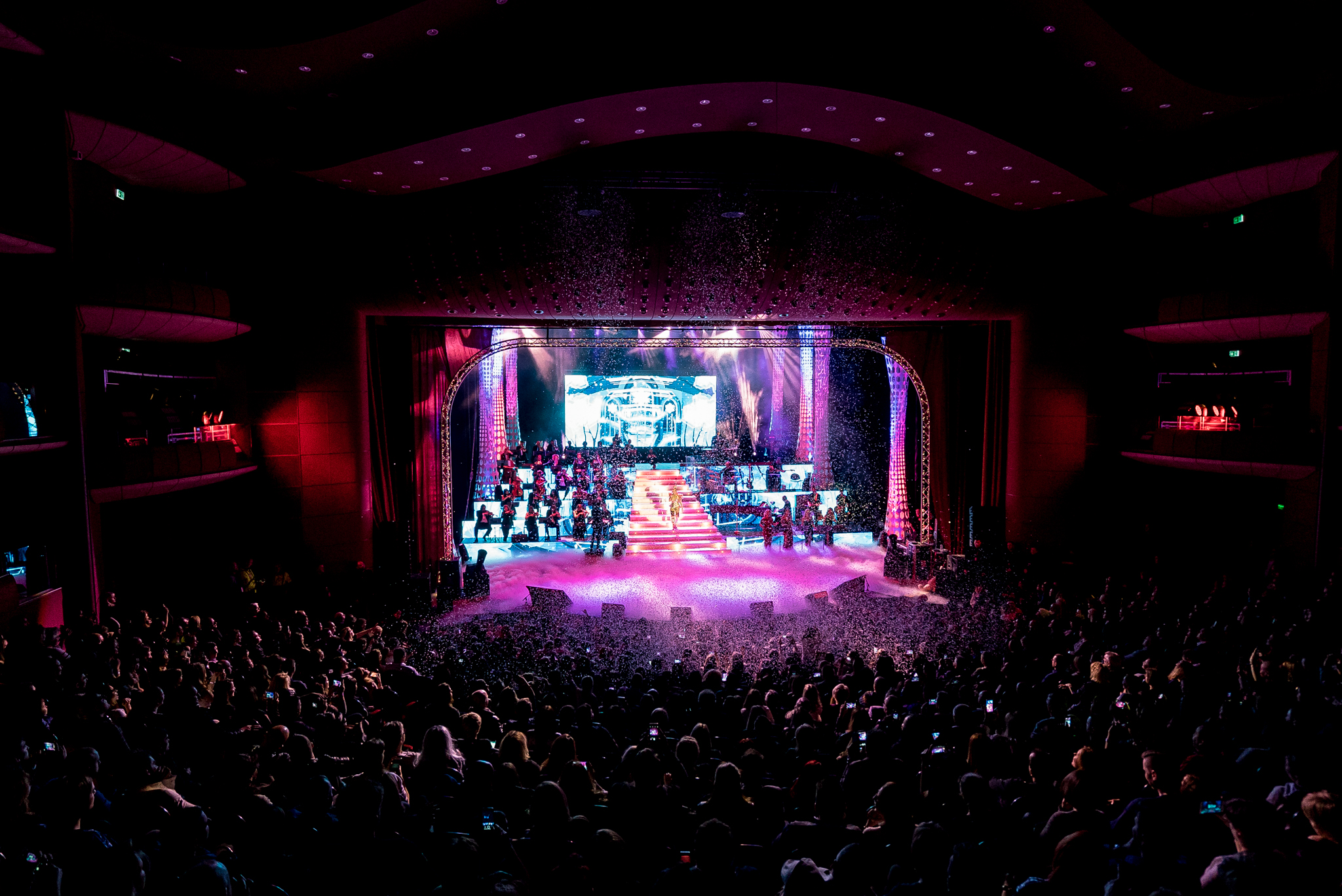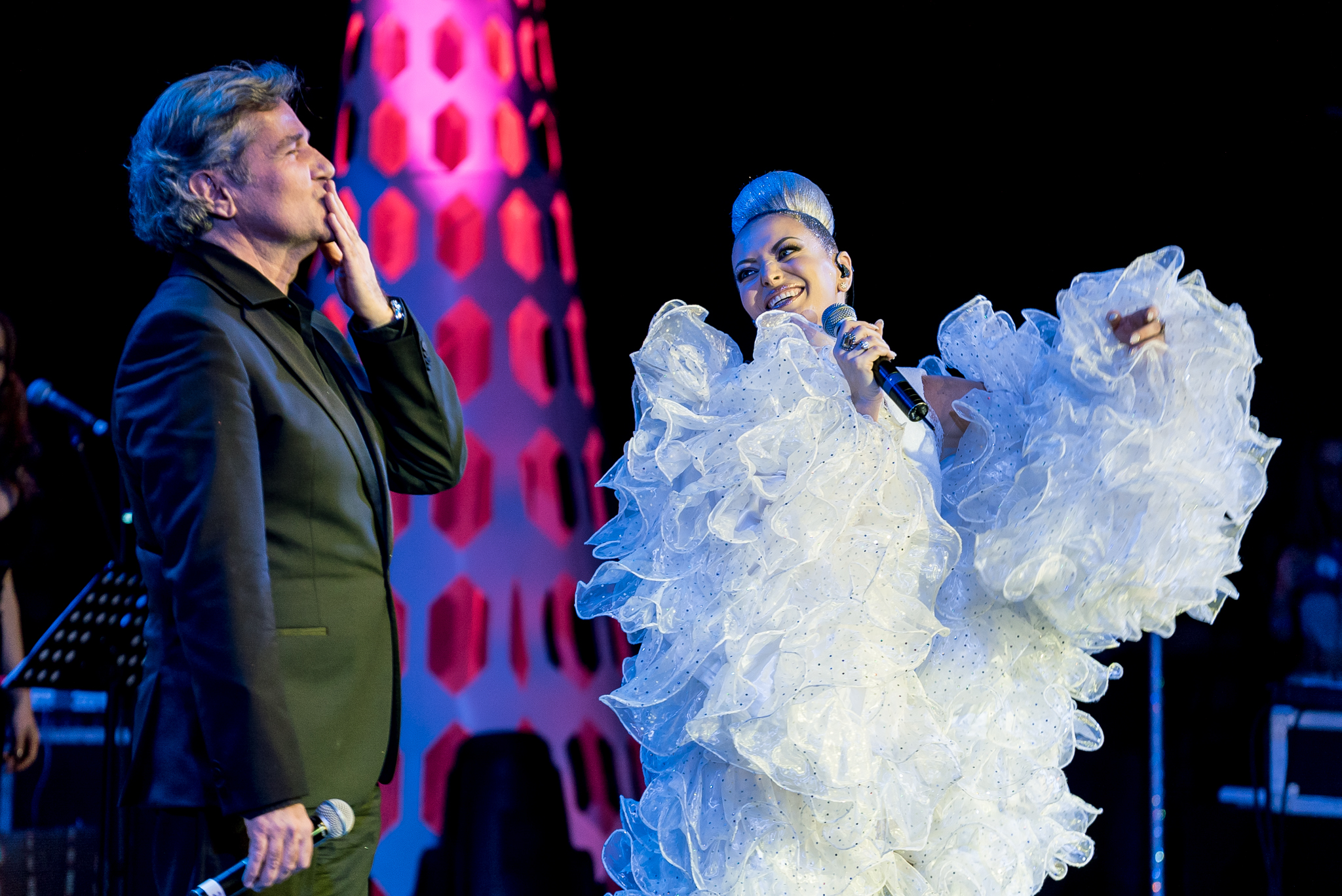 La intrarea Teatrului National, norocosii fani s-au delectat cu cele mai fine bauturi si aperitive asigurate de catre Zen Sushi, Chef’s Experience, Opera House si Morpho. Dupa incheierea spectacolului, petrecerea a continuat in Nuba, la after party-ul oficial.