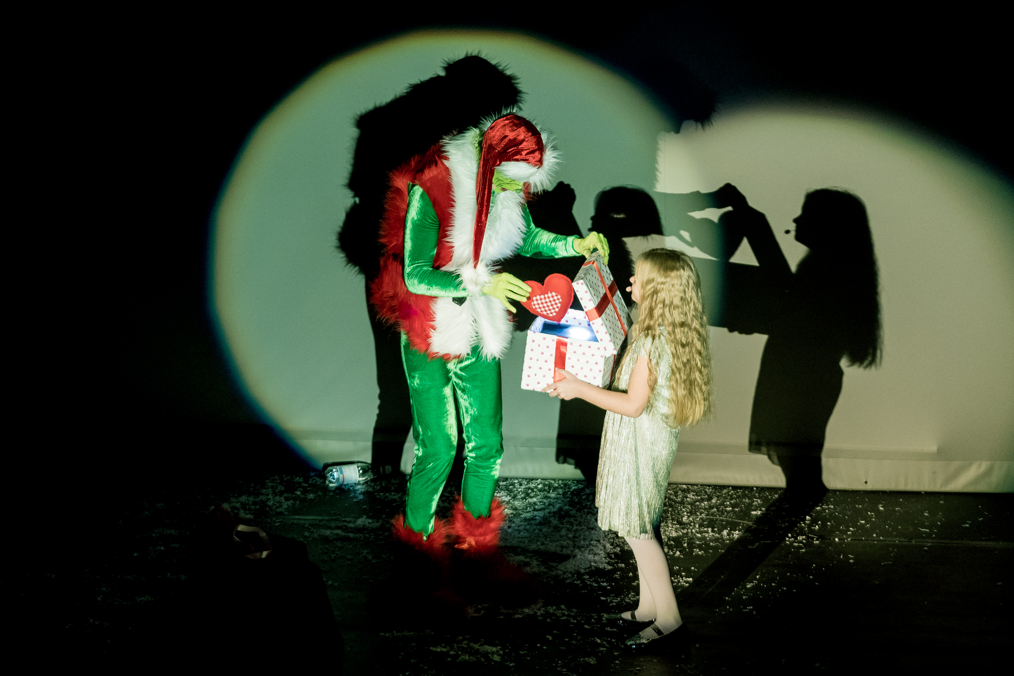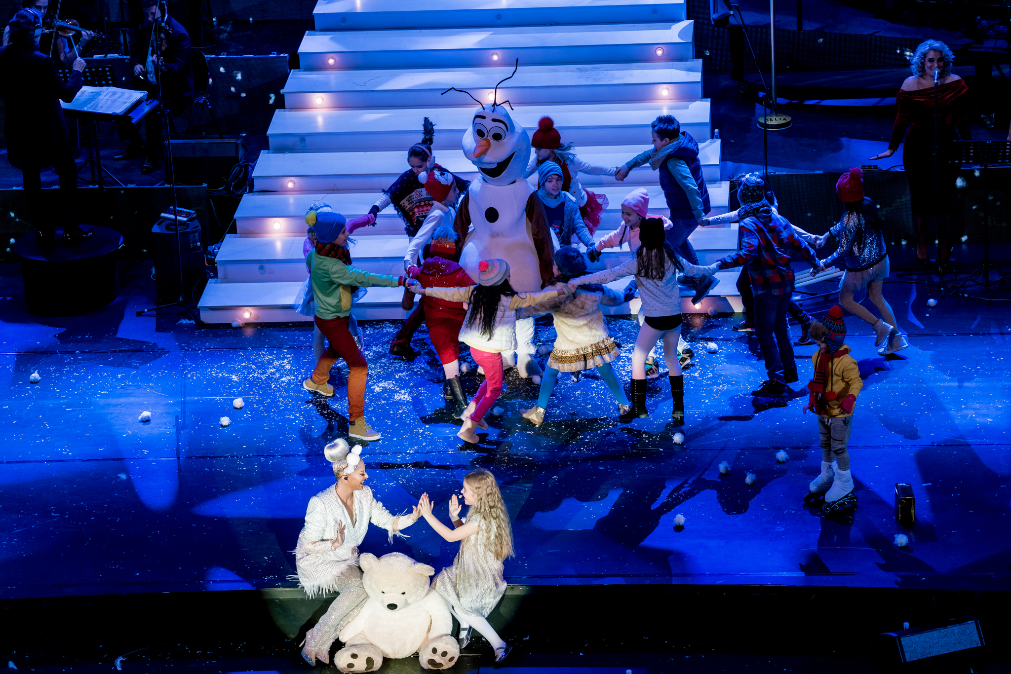 Pe scena feerica au urcat pe rand, artisti cu greutate in muzica romaneasca. Artisti de top ca Smiley, Horia Brenciu si Dan Bitman au fost o parte din corola de cadouri auditive, spre extazul publicului care a fost luat prin surprindere. Alaturi de Delia a mai urcat pe scena corul Winter Voices, cu care a interpretat emotionant Hallelujah. Printre invitatii Deliei s-au numarat si Rares Cojoc (de 14 ori campion national la dans sportiv), impreuna cu partenera lui, Ada Matei, dar si gratioasa pereche de balerini formata din Diana Gal si Egoitz Segura (Spania). Spre bucuria publicului, pe scena si-a facut aparitia si Delia mica (denumire data de fani fetitei care o reprezinta pe Delia in copilarie, prin prisma clipului “Cine m-a facut om mare”). Fetita a jucat un rol important in spectacol impreuna cu maleficul Grinch, interpretat de francezul Patrik Cottet Moine, personaj cunocut publicului din Romania dupa participarea la iUmor. La finalul piesei “Cine m-a facut om mare”, Delia a invitat-o pe mama ei pe scena sa recreeze o poza din copilarie, moment care a emotionat intreaga sala. Spectacolul a luat sfarsit abia dupa 2 bisuri cerute de catre public, situatie rar intalnita la un artist roman.