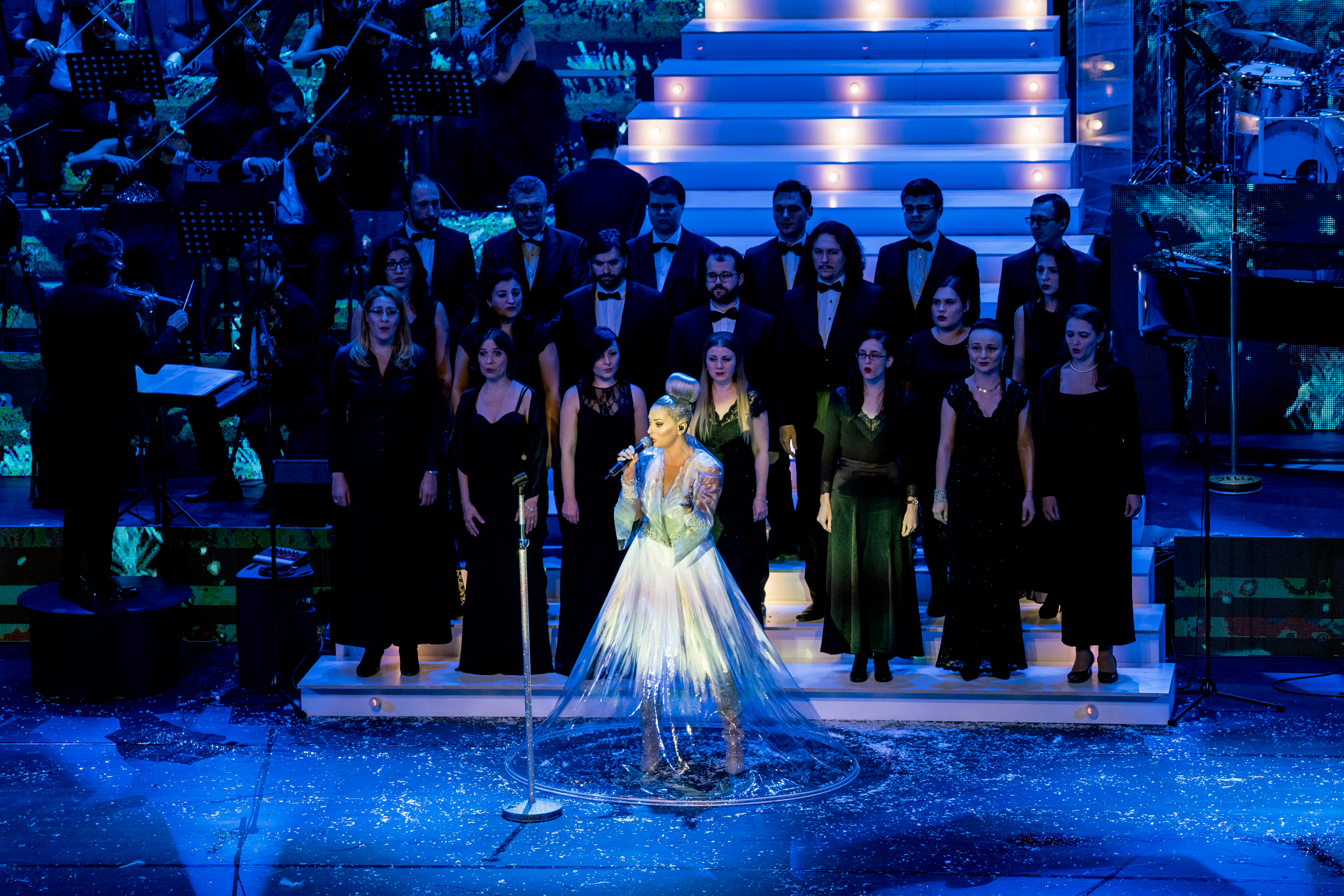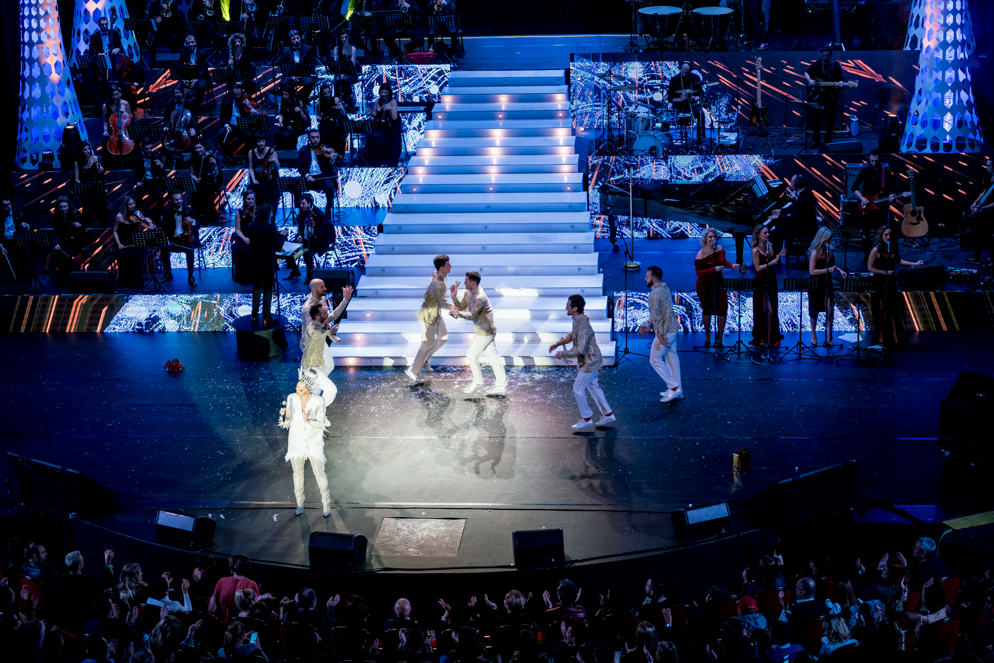 Un spectacol SOLD OUT in doar o luna de la punerea in vanzare a biletelor, Delia’s Winter Wonderland a scris aseara o noua fila in manualele de muzica in istoria Romaniei. Delia a incantat publicul Teatrului National cu un concert care s-a intins pe parcursul a aproape 2 ore, acompaniata de excelenta orchestra condusa de maestrul George Natsis. Atat melodiile din repertoriul international, cat si cele proprii, au fost rescrise special pentru acest concert, tot de catre maestrul George Natsis, rezultatul fiind o armonie exceptionala de voci si instrumente.