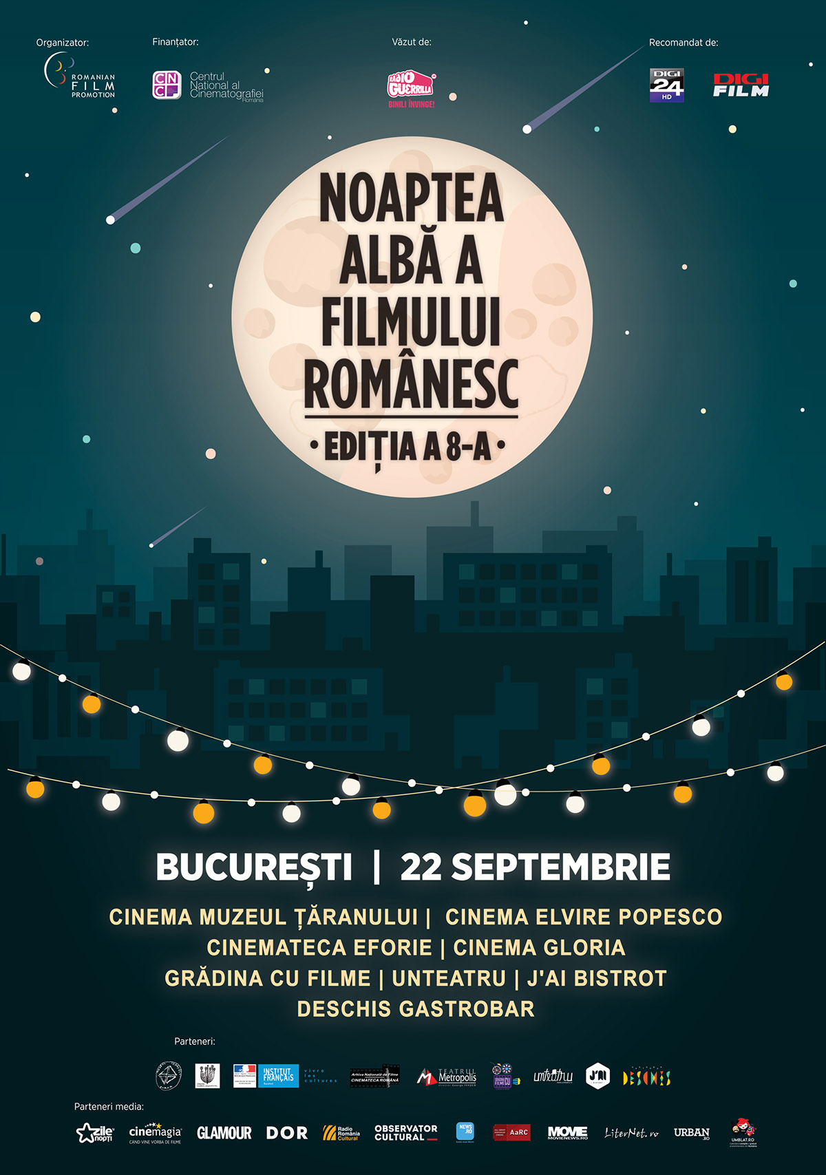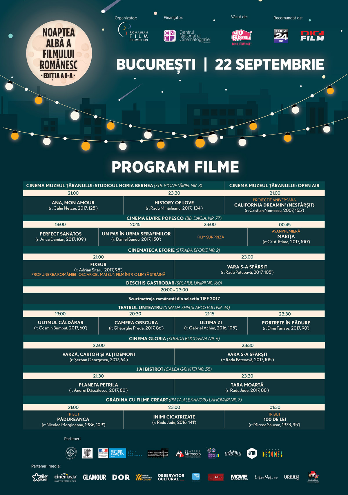 Parteneri media: Europa FM, Zile și Nopți, Cinemap, Glamour, VIVA!, ELLE, News.ro, AListMagazine, Observator Cutural, Agerpres, LiterNet, Movie News, AaRC, Cinefan, Umblat.ro, Urban.ro